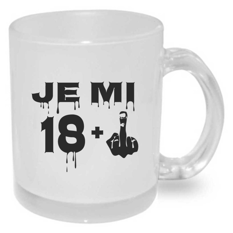 Perfektní bílý keramický hrnek k 19. narozeninám s vtipným potiskem "Je mi 18 plus prostředníček". Originánální dárek na 19. narozeniny pro ženu či muže.
