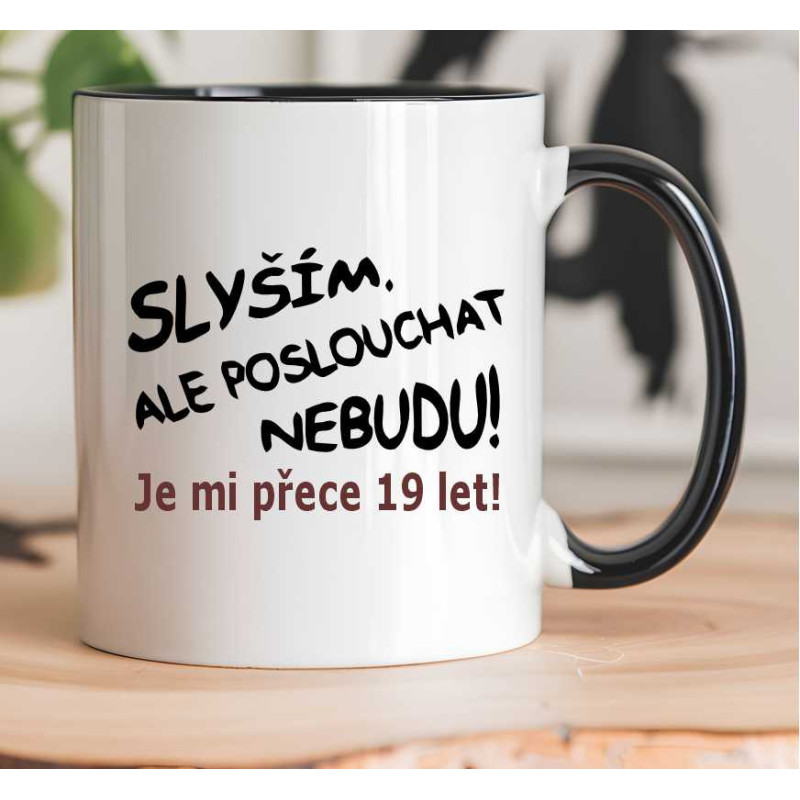 Hrnek s vtipným potiskem je vtipný a praktický dárek k 19 narozeninám pro ženu, který najde použití na kávu nebo čaj a zůstane památkou.