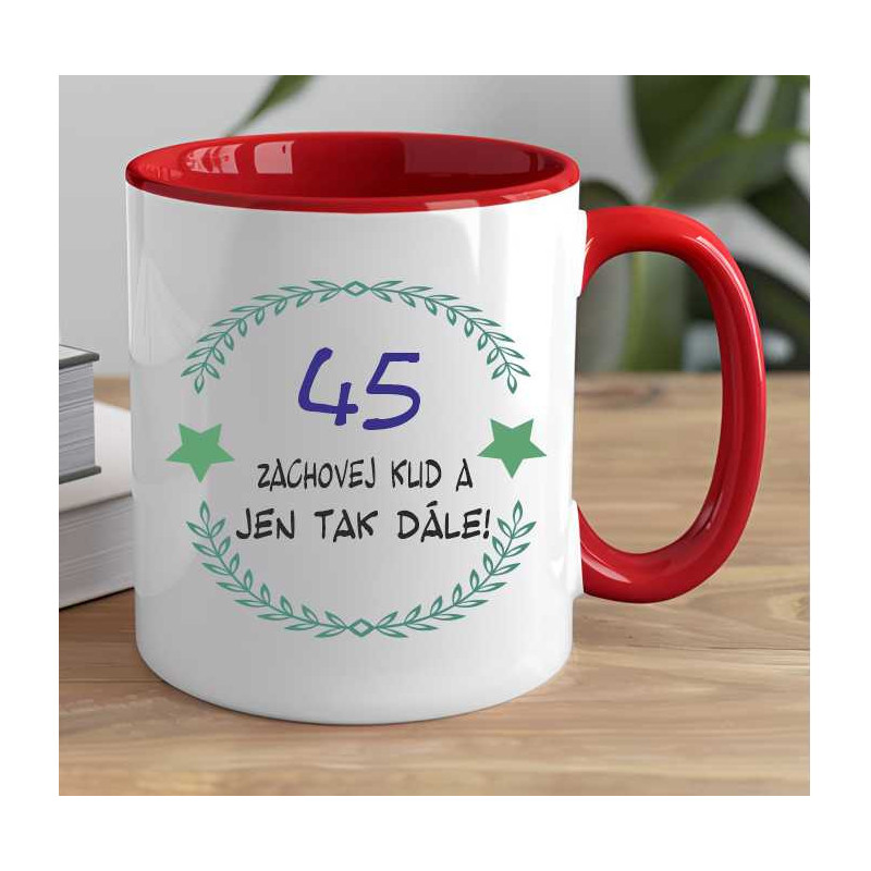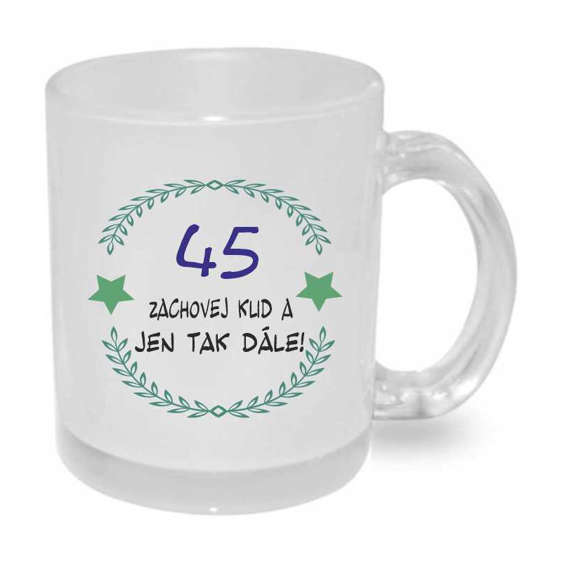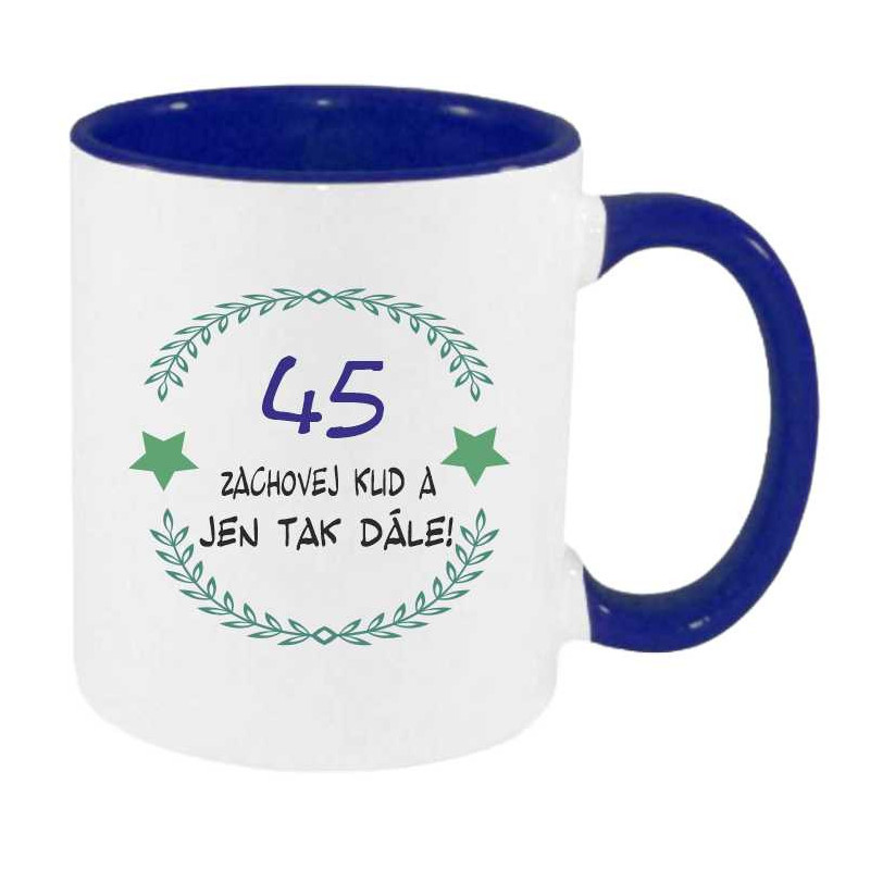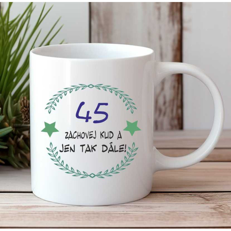 Hrníček je dárek praktický dá se používat denně na kávu či čaj nebo také jako výzdoba na vzpomínku na krásné 45. narozeniny.
