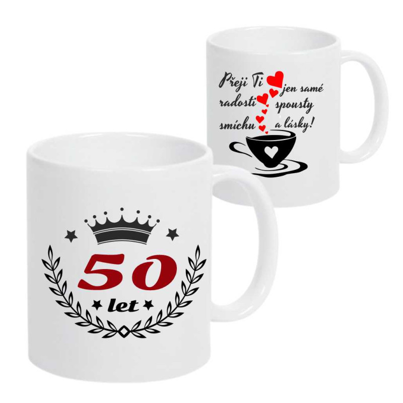 Hledáte vtipný dárek k 50. narozeninám, který je originální, praktický a má nápad? Tento hrnek s textem „Přeji ti jen samé radosti s korunkou“ a motivem korunky je ideální jako dárek k 50 narozeninám pro muže i ženy.