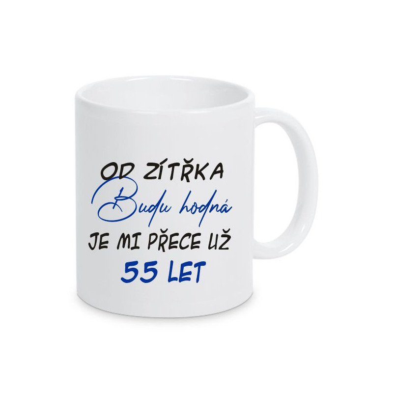 Humorný a originální dárek, který potěší každou oslavenkyni k 55. narozeninám! Tento hrnek s vtipným nápisem je skvělý způsob, jak oslavit půlkulatiny s nadhledem a špetkou humoru.