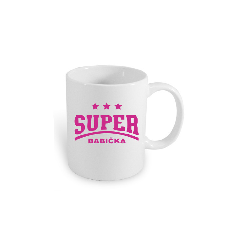Hrnek je zdoben vtipným nápisem "Super Babička", což vystihuje výjimečnost a lásku, kterou k babičce máte.