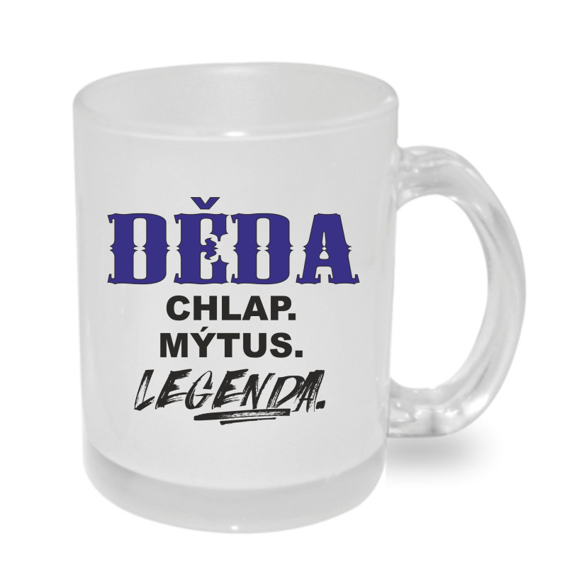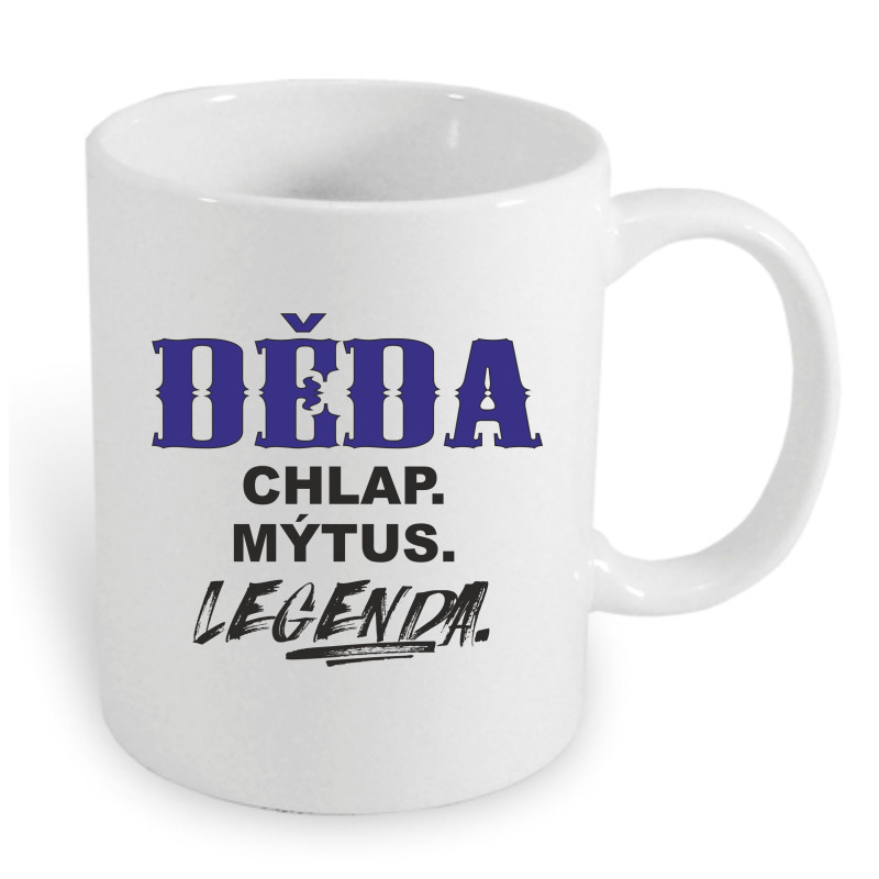 Nápis "Děda, Chlap, Mýtus, Legenda" dodává hrnku osobní a unikátní charakter.