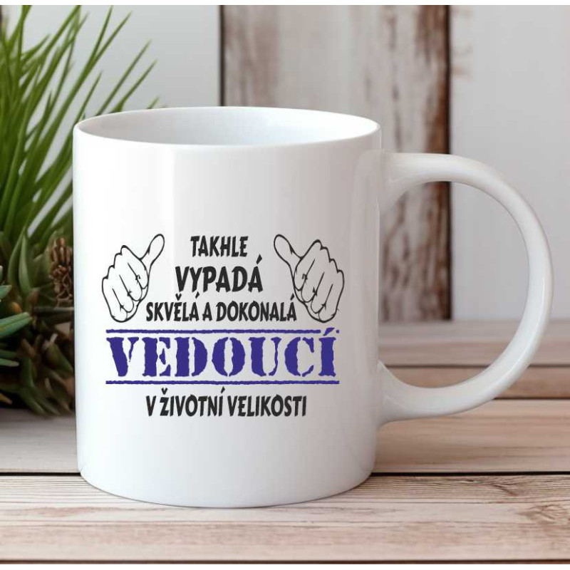 Tento hrnek je vyjádření vašeho uznání a respektu k vaší vedoucí. Takhle vypadá skvělá a dokonalá vedoucí v životní velikosti – to je to, co tento hrnek sděluje.