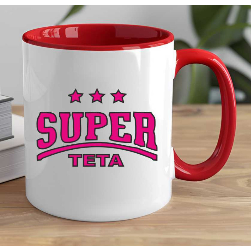 Keramický hrnek v různých barvách s vtipným potiskem: Super teta. Hrnek je ideálním dárkem pro tetu k Vánocům, narozeninám nebo jen tak pro radost. Udělejte tetičce radost praktickým hrnkem, který využije každý den na kávu nebo čaj.