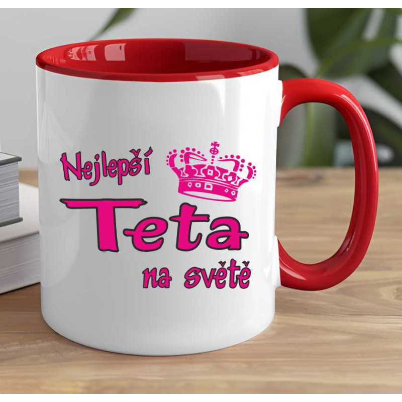 Keramický hrnek v různých barvách s vtipným potiskem: Nejlepší teta na světě. Hrnek je ideálním dárkem pro tetu k Vánocům, narozeninám nebo jen tak pro radost. Udělejte tetičce radost praktickým hrnkem, který využije každý den na kávu nebo čaj.