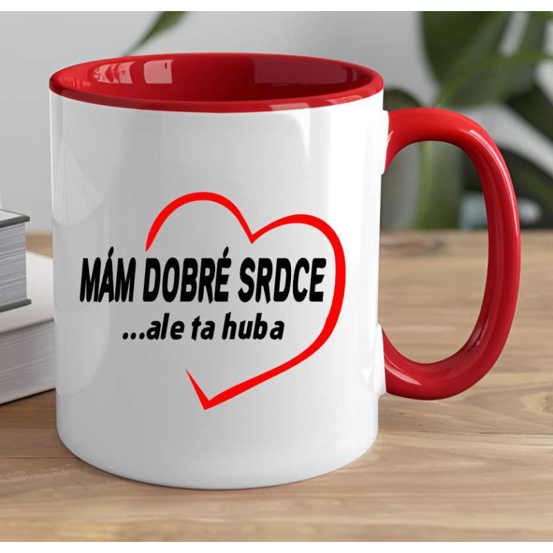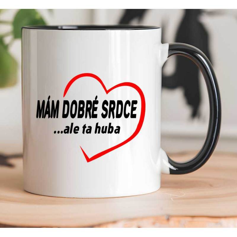 Hrnek s potiskem: Mám dobré srdce, ale ta huba. Udělejte radost sobě nebo osobě blízké jeko dárek k Vánocům nebo jiné příležitosti.