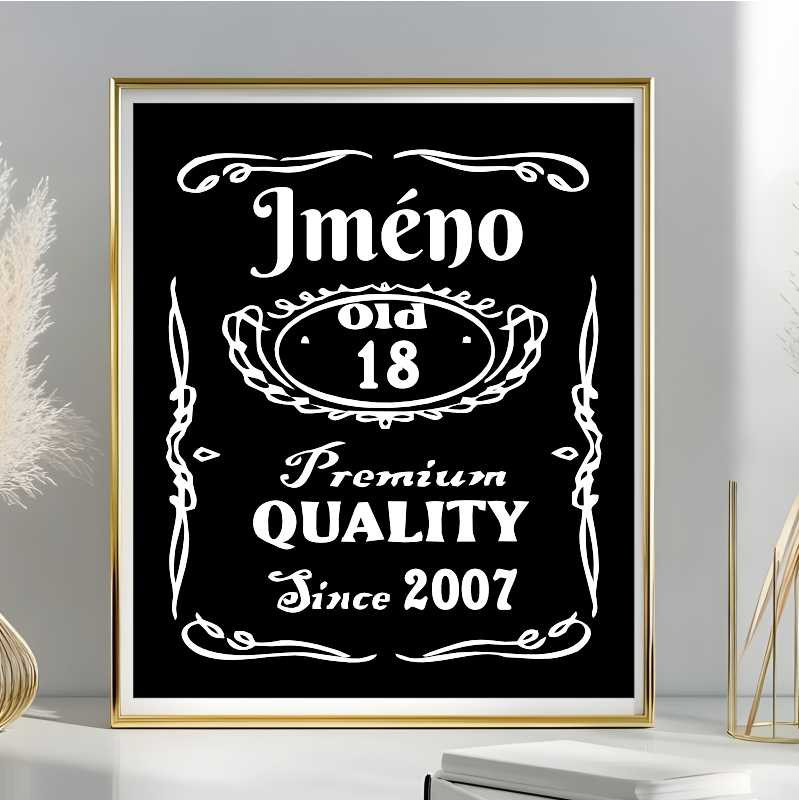Přání k 18. narozeninám s volbou jména v motivu Jack Daniels. Je to nejen přání, ale dárek sám o sobě, který zanechá trvalý dojem a stane se nezapomenutelnou vzpomínkou na tento významný milník.