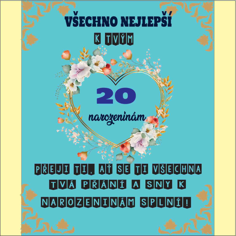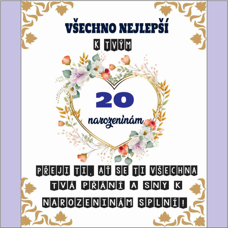 Hledáte dokonalý způsob, jak popřát k těmto výjimečným narozeninám? Naše krásné přání k 20. narozeninám je perfektní volbou, která zanechá dojem a potěší srdce. Elegantní design a upřímná slova udělají z přání nezapomenutelný dárek.