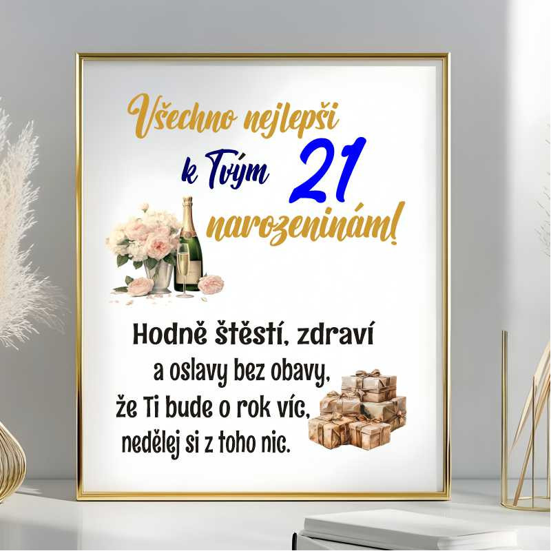 Darujte oslavenci krásné přání, které vystihuje to nejdůležitější – štěstí, zdraví a lásku. Toto papírové přání je ideálním doplňkem k 21. narozeninám, ať už jej předáte osobně, nebo přidáte k dárku. Toto přání je nejen praktické, ale také upřímné a osobní. Skladem a připraveno k odeslání.