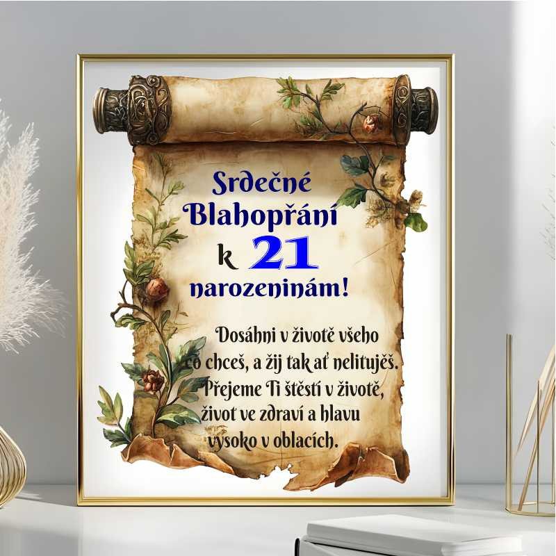Blahopřání je vyrobeno z kvalitních materiálů, což zajišťuje jeho odolnost a trvanlivost. Perfektně se hodí k připojení k dárku nebo jako samostatné vyjádření vašich přání. Udělejte z 21. narozenin výjimečný moment s tímto jedinečným blahopřáním, které zahřeje u srdce a vytvoří úsměv na tváři oslavence.