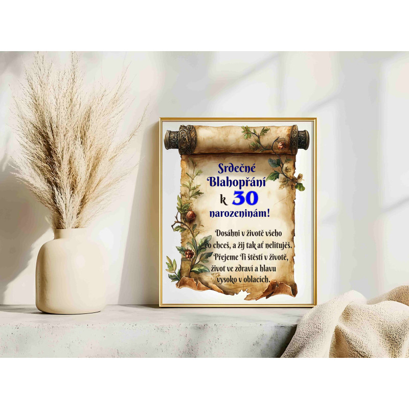 Třicítka je významným milníkem plným nových možností a výzev! Toto stylové blahopřání s textem „Dosáhni v životě všeho, co chceš“ je ideální volbou, jak oslavenci popřát hodně štěstí, odvahy a úspěchů do dalších let. Přání spojuje eleganci a inspirativní poselství, které potěší každého.