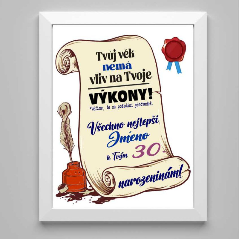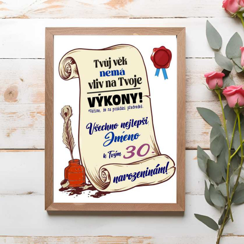 Narozeninové vtipné přání k oslavě 30 let s možností přidání jména je perfektním způsobem, jak oslavenci popřát s humorem a originalitou k této důležité životní události.
