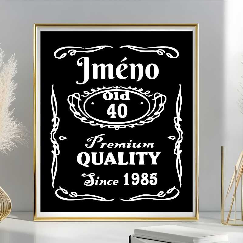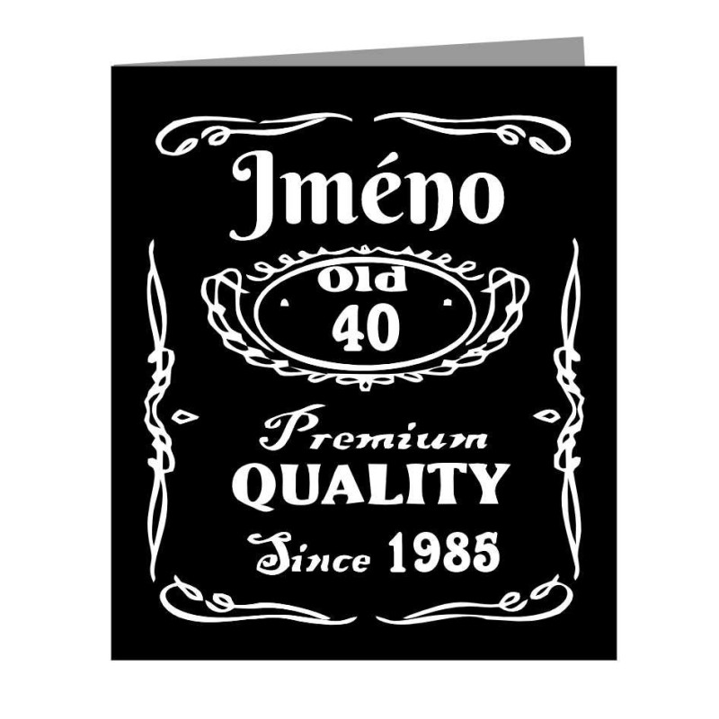 Přání k 40. narozeninám s volbou jména v motivu Jack Daniels – perfektní dárek, který překvapí a potěší každého milovníka legendární whiskey.