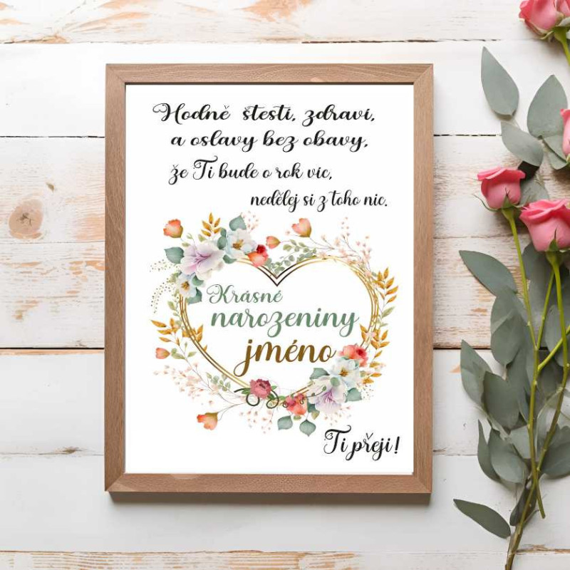 Personalizace jménem dodává přání osobitý a jedinečný nádech, díky čemuž je perfektním dárkem pro muže i ženy.