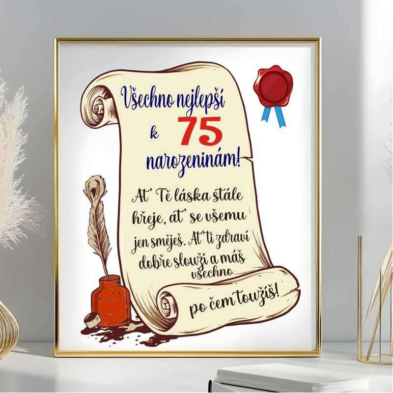 Veselé a vtipné přání k 75. narozeninám pro muže, které nezkazí žádnou srandu! Skvělý doplněk k dárku, který oslavenci zaručeně vykouzlí úsměv na tváři a zpříjemní den.