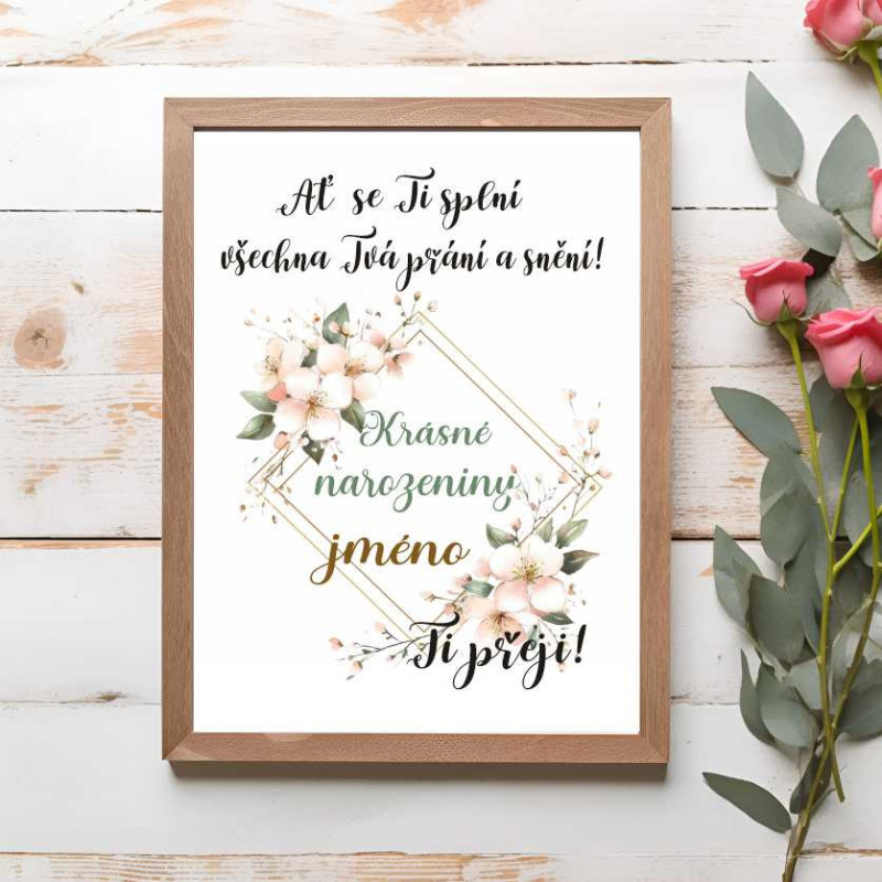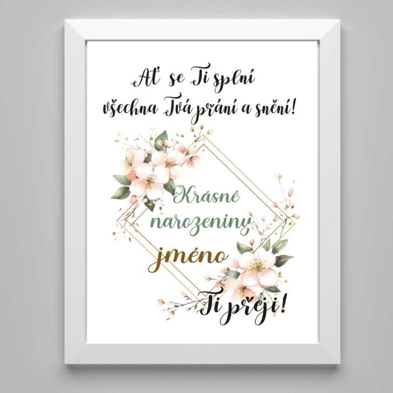✅Přání v dřevěném rámu se sklem - Přírodní, bílý, černý rám