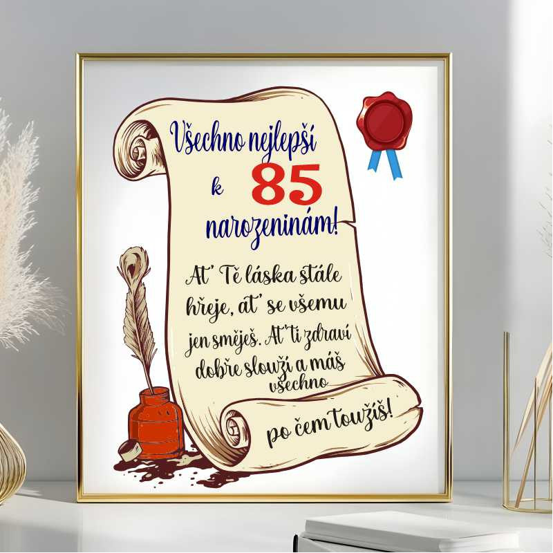 Nechte oslavence smát se od ucha k uchu s tímto vtipným přáním k 85. narozeninám! Perfektní dárek pro muže, který nebere život příliš vážně a miluje humor v každé situaci.
