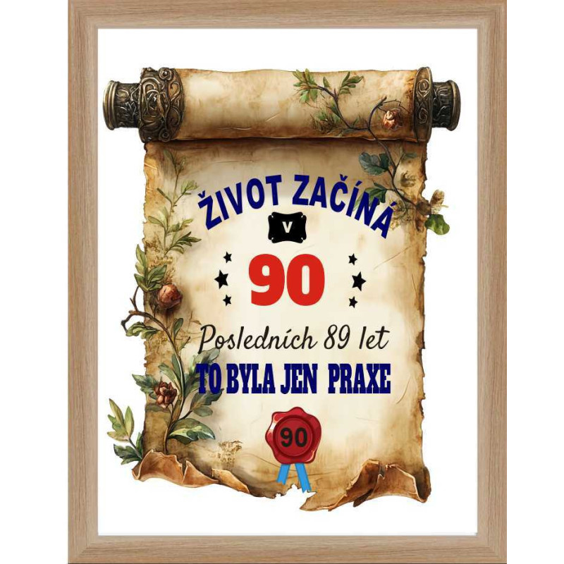 Hledáte originální a vtipné přání k 90. narozeninám? Překvapte oslavence tímto humorným přáním s nápisem: „Život začíná v 90 letech. Posledních 89 let to byla jen praxe“.
