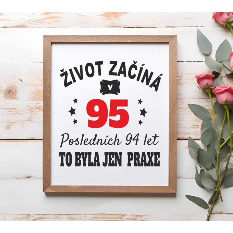 Hledáte originální a vtipné přání k 95. narozeninám pro muže nebo ženu, které vykouzlí úsměv na tváři a potěší oslavence? Toto přání s textem „Život začíná v 95 letech. Posledních 94 let to byla jen praxe“ je přesně to pravé!