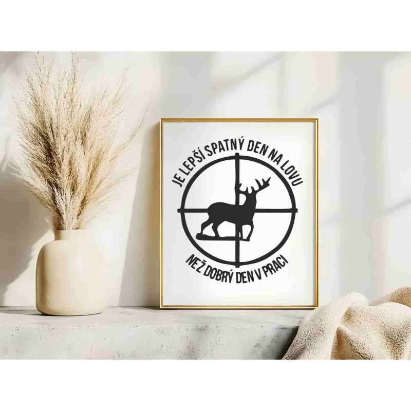 Hledáte ideální dárek pro milovníka lovu, myslivosti a přírody? Tento stylový obraz s vtipným a trefným textem „Je lepší špatný den na lovu než dobrý den v práci“ dokonale vystihuje vášeň každého myslivce. Skvěle se hodí jako dekorace do pracovny, lovecké chaty nebo obývacího pokoje, kde podtrhne jedinečný styl a zálibu obdarovaného.