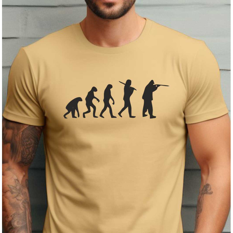 Hledáte originální dárek pro myslivce, který už má všechno? Naše pánské tričko s motivem "Evoluce Myslivce" je přesně to, co potřebujete! Tento kousek oblečení vypráví příběh, který každý lovec zná - cestu od prvobytného lovce až po moderního myslivce s puškou a kloboukem.
