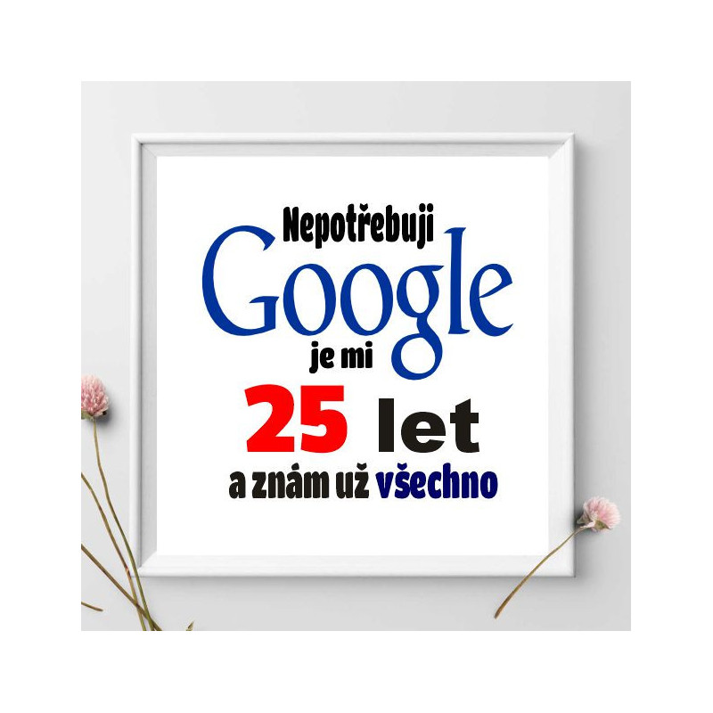 Obraz s vtipným textem je praktickým dárkem k 25 narozeninám pro muže nebo ženu.