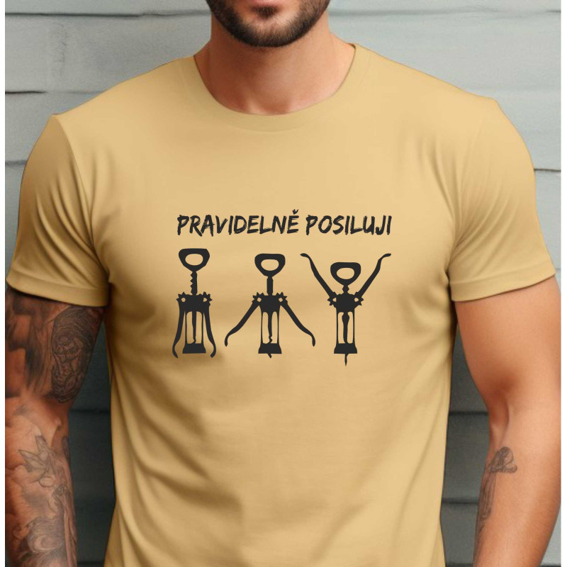 Hledáte originální dárek pro muže, který má smysl pro humor a občas si rád vychutná skleničku dobrého vína? Naše pánské tričko s vtipným potiskem "Pravidelně posiluji" je přesně to, co potřebujete!
