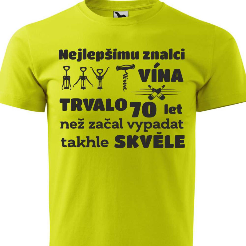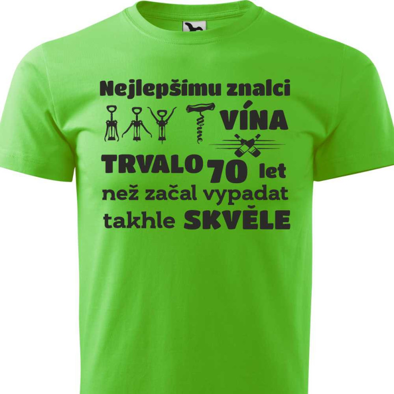 Hledáte originální a zábavný dárek k 70. narozeninám pro muže, který si rád dopřeje sklenku vína? Naše pánské tričko s vtipným vinařským motivem je ideálním výběrem! Toto tričko skvěle spojuje humor s jeho vášní pro víno, což z něj činí dokonalý dárek k tomuto významnému jubileu.