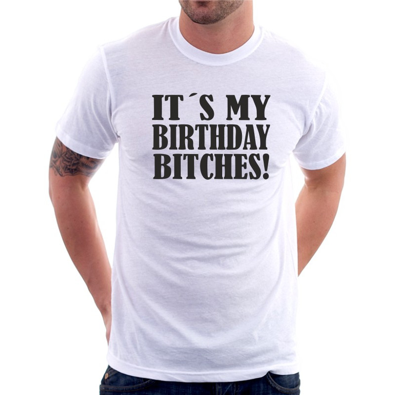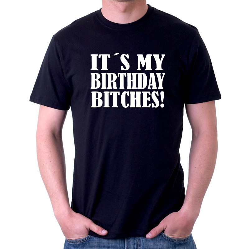 Pánské tričko "It's my birthday, bitches!" je ideální volbou pro všechny, kteří chtějí vyjádřit svůj výrazný a odvážný styl během svých narozenin.