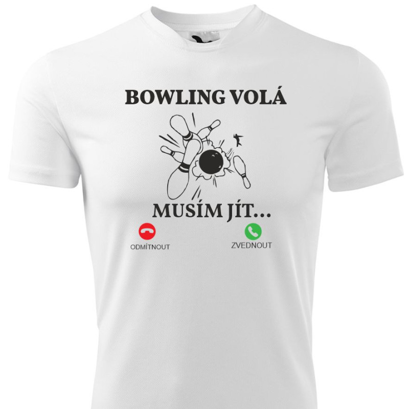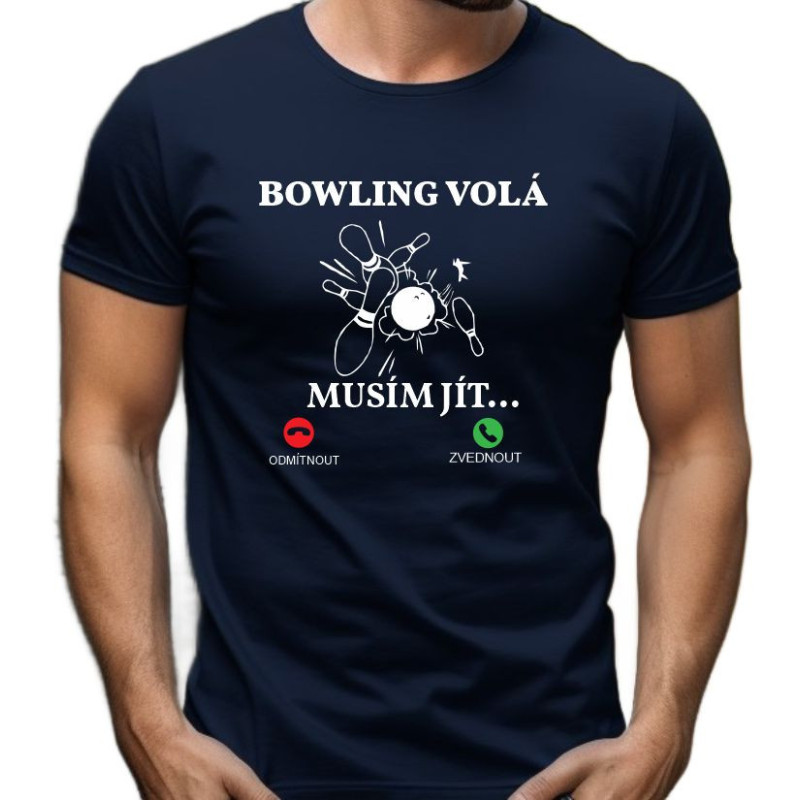 Pánské tričko s vtipným potiskem: Bowling volá musím jít.
