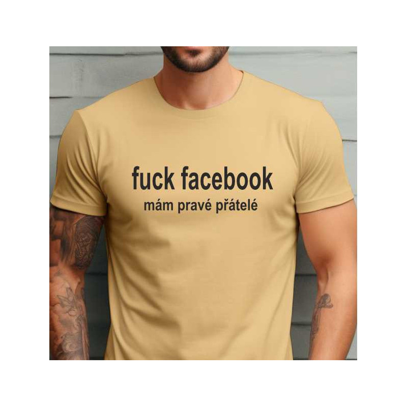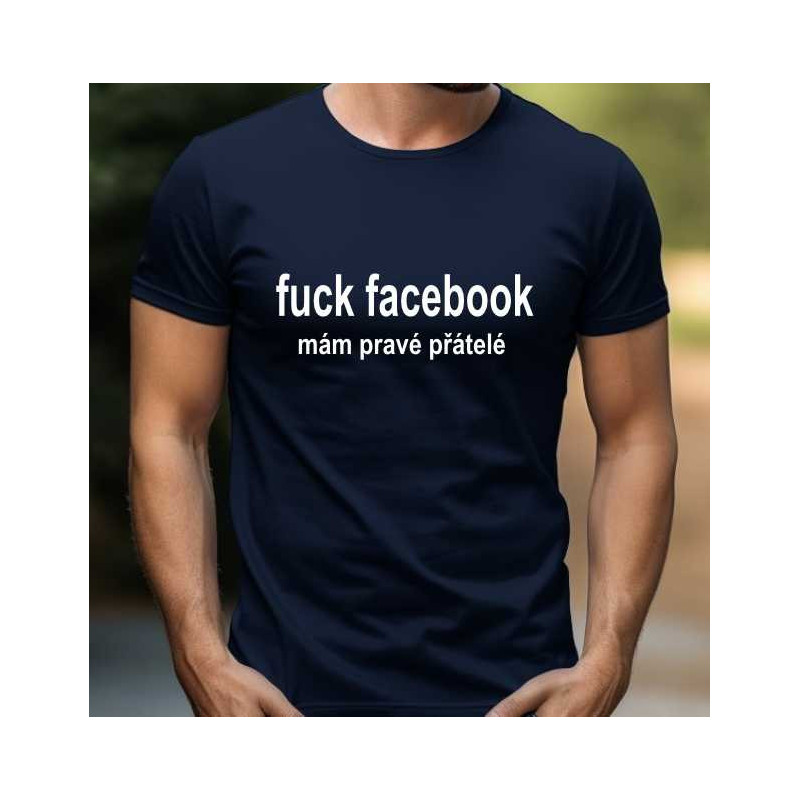 Pánské tričko s potiskem 'Fuck Facebook, Mám Pravé Přátelé' je vzkazem těm, kteří chtějí odpojit se od virtuálního světa a znovu si užít kvalitní čas s těmi nejbližšími.