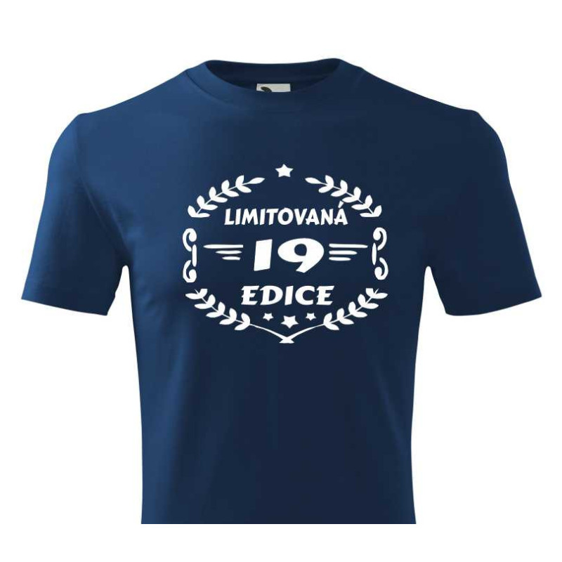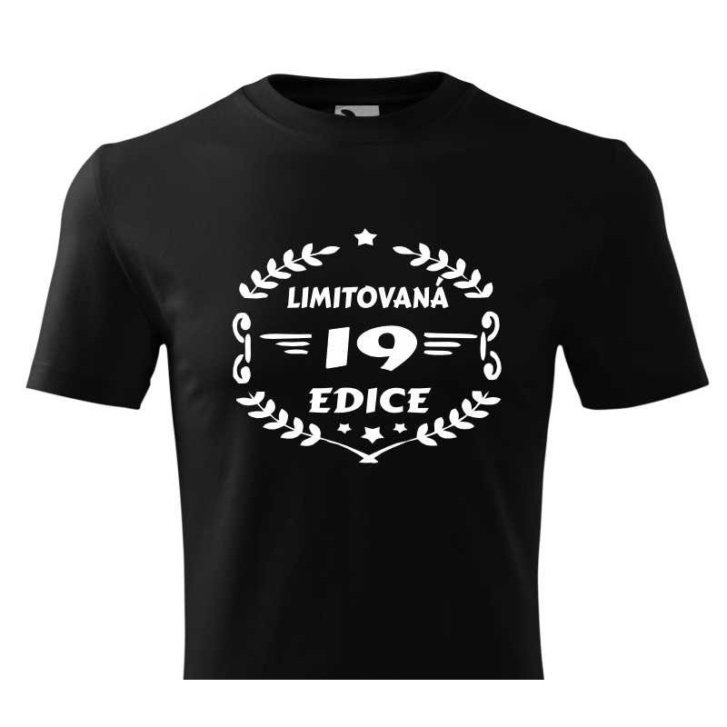 Pánské tričko "19 limitovaná edice" je skvělé k oslavě 19 narozenin. Udělejte radost tričkem s potiskem jako dárkem k 19. narozeninám synovi, vnukovi, příteli nebo známému, které nejen pobaví na oslavě, ale bude i pěknou vzpomínkou.