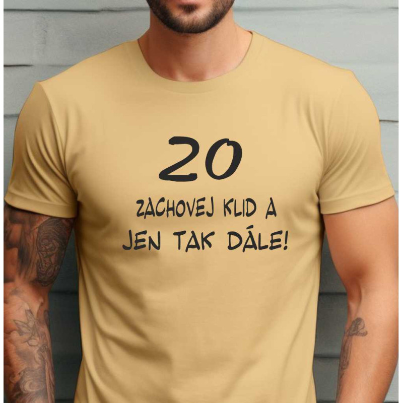 Pánské bavlněné tričko s krátkým rukávem s vtipným potiskem. Tričko je ideálním dárkem k 20. narozeninám, je to dárek praktický protože trička každý nosí a také je potřebuje. Triko s potiskem je tedy nejen užitečným, ale i dárkem, který zaujme a potěší a udělá z narozenin zážitek.