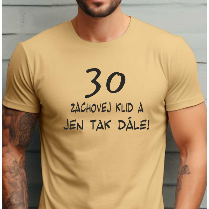 Pánské bavlněné tričko s krátkým rukávem s vtipným potiskem. Tričko je ideálním dárkem k 30. narozeninám, je to dárek praktický protože trička každý nosí a také je potřebuje. Triko s potiskem je tedy nejen užitečným, ale i dárkem, který zaujme a potěší a udělá z narozenin zážitek.
