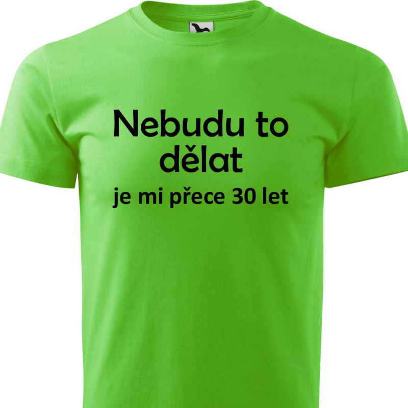 Hledáte vtipný dárek k 30. narozeninám? Pánské tričko s vtipným potiskem: Nebudu to dělat je mi přece 30 let je skvělý tip na dárek k 30. narozeninám pro syna, bratra nebo jinou odobu blízkou. Udělejte radost s kvalitním tričkem s humorným nápisem, který bude mít úspěch.