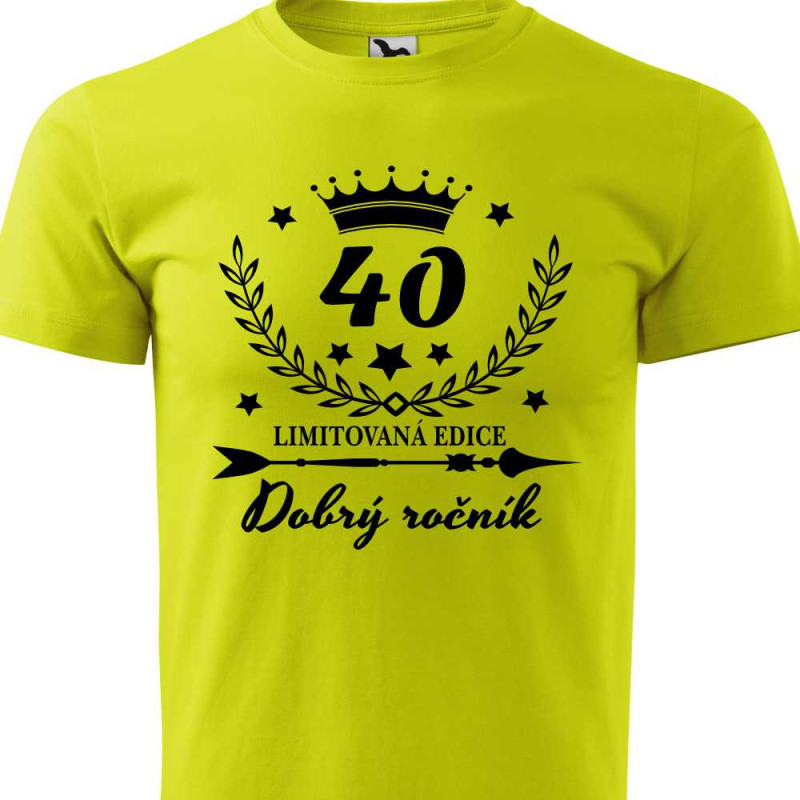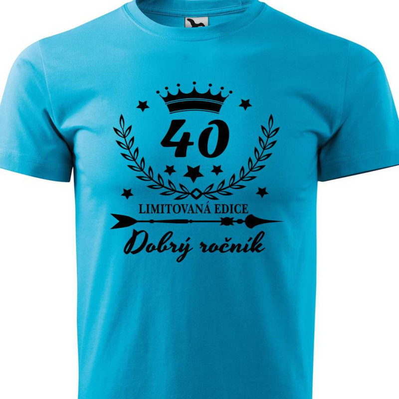 Pánské bavlnění tričko s potiskem "40 let dobrý ročník - limitovaná edice" je ideální k oslavě 40. narozenin pro dospívajícího muže. Udělejte radost oslavenci praktickým dárkem k 40. narozeninám.