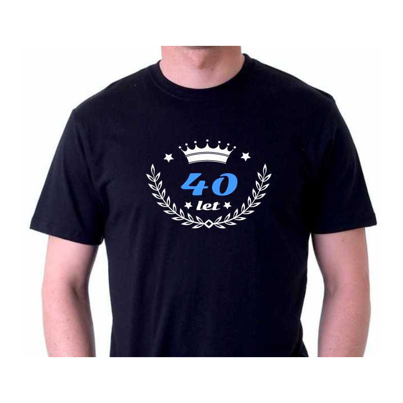 Pánské bavlnění tričko s potiskem "40 let". Tričko je skvělým dárkem k 40. narozeninám a bude využiti na narozeninové oslavě. Je originální, kvalitní a bude pěknou památkou na tutu nezapomenutelnou narozeninovou párty.