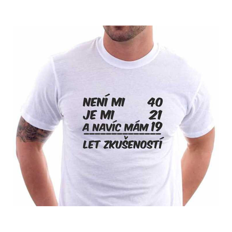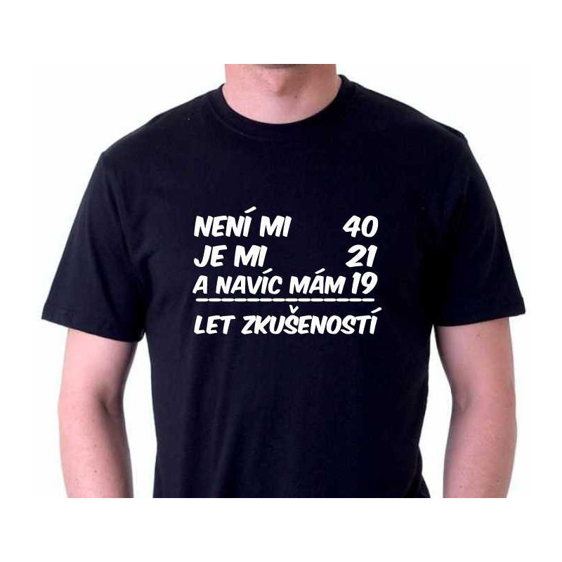 Pánské tričko "Není mi 40, je mi 21 a navíc mám 19 let zkušeností" je ideální k oslavě 40. narozenini pro muže. Udělejte radost dárkem, tímto tričkem oslavenci 40. narozenin.