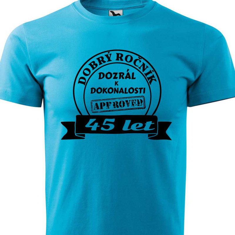 Pánské bavlněné tričko s krátkým rukávem s potiskem textu, který je skvělý k oslavě 45 narozenin. Udělejte radost k 45 narozeninám dárkem, tričkem s originálním potiskem.