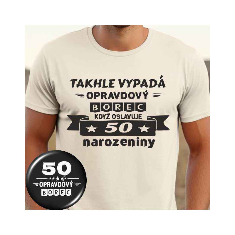 Toto pánské tričko s nápisem "Opravdový borec slaví 50 narozeniny" a vtipnou plackou je skvělým způsobem, jak oslavit půl století plné zážitků. Kvalitní materiál zajišťuje pohodlí během celé oslavy, zatímco stylový potisk zaručuje, že oslavence nikdo nepřehlédne.
