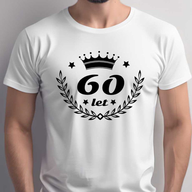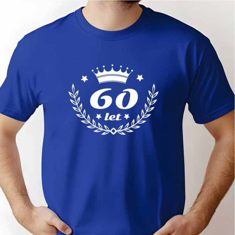 Pánské bavlnění tričko s potiskem "60 let". Tričko je skvělým dárkem k 60. narozeninám a bude využiti na narozeninové oslavě. Je originální, kvalitní a bude pěknou památkou na tutu nezapomenutelnou narozeninovou párty.