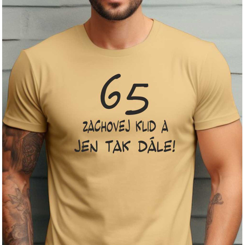 Pánské bavlněné tričko s krátkým rukávem s vtipným potiskem. Tričko je ideálním dárkem k 65. narozeninám, je to dárek praktický protože trička každý nosí a také je potřebuje. Triko s potiskem je tedy nejen užitečným, ale i dárkem, který zaujme a potěší a udělá z narozenin zážitek.