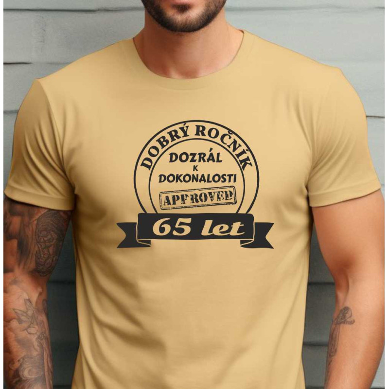 Pánské bavlněné tričko s krátkým rukávem s potiskem textu, který je skvělý k oslavě 65 narozenin. Udělejte radost k 65 narozeninám dárkem, tričkem s originálním potiskem.