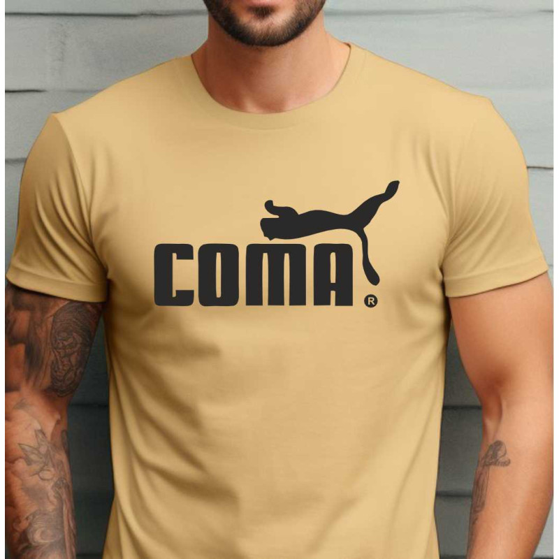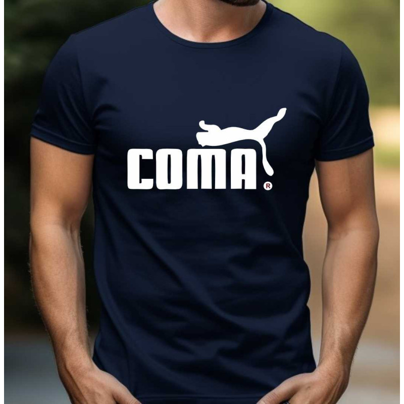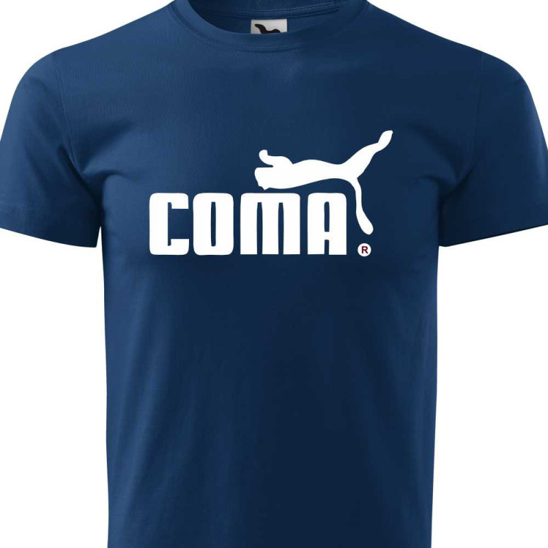 Pánské tričko s vtipným potiskem parodie na značku puma - COMA. Udělejte si radost tímto skvělým tričkem nebo osobě blízké jako dárek k jakékoliv příležitosti. Tričko, které nikdy nevyjde z módy a budě dělat radost dlouhou dobu.