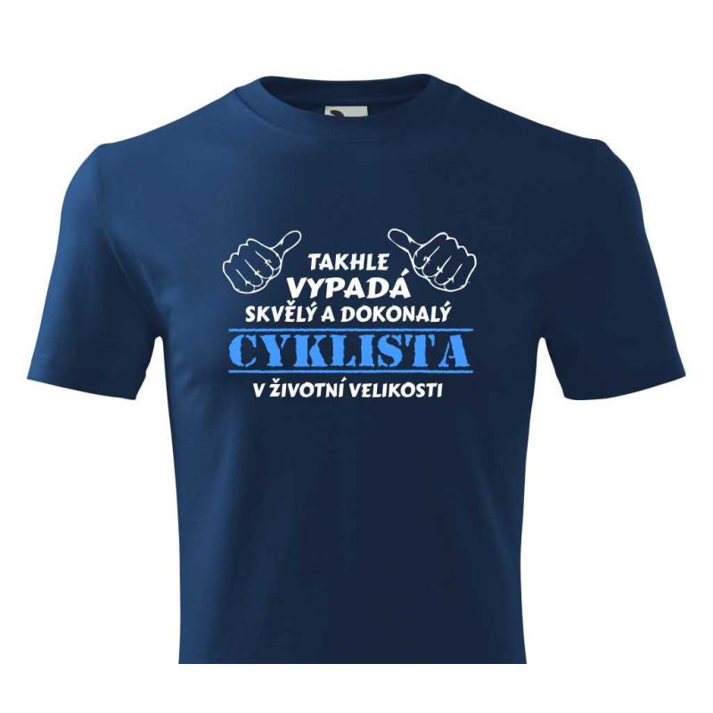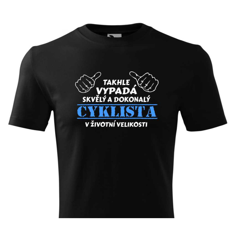 Cyklistika je velice populární a určitě známe někoho, kdo rád šlape do pedálu. Udělejte mu radost dárkem - cyklistickým tričkem. Pánské tričko s nápisem: Takhle vypadá skvělý a dokonalý cyklista v životní velikosti - je skvělým dárkem pro muže, který miluje jízdu na kole.