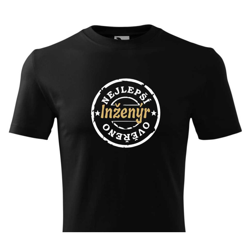 Jste inženýr nebo hledáte dárek pro inženýra. Udělejte mu radost dárkem - vtipným tričkem s nápisem: Nejlepší inženýr ověřeno.
