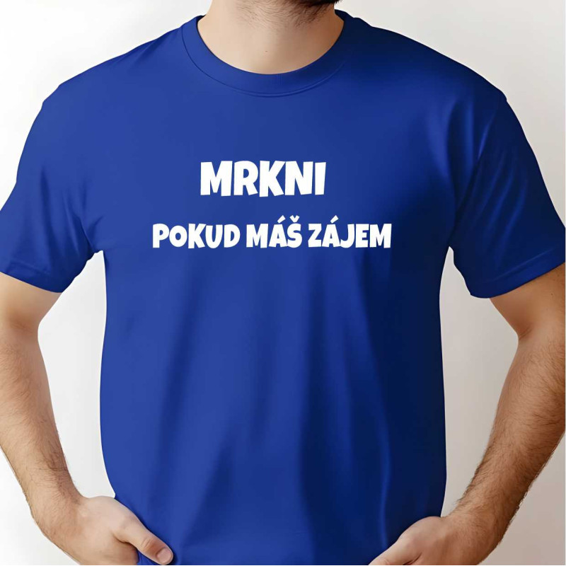 Hledáte originální dárek pro muže s humorem? Toto tričko s vtipným nápisem "Mrkni pokud máš zájem" zaručeně pobaví okolí a přitáhne pozornost. Je ideální pro muže, kteří se nebojí být středem pozornosti.