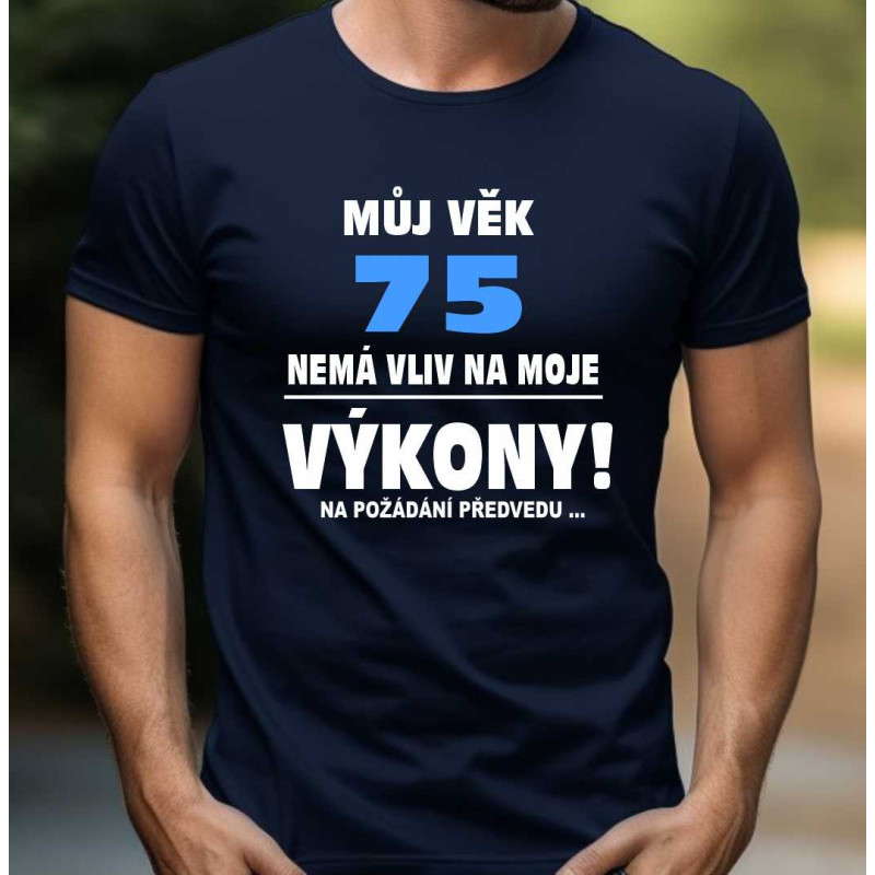 Hledáte dokonalý dárek k narozeninám pro vašeho milovaného muže, který slaví své úctyhodné 75. narozeniny? Nebo možná hledáte něco originálního, co by vyzdvihlo jeho energii a vitalitu, kterou stále má? Pak jste na správném místě! Představujeme vám pánské tričko "Můj věk 75 nemá vliv na moje výkony, na požádání předvedu.."