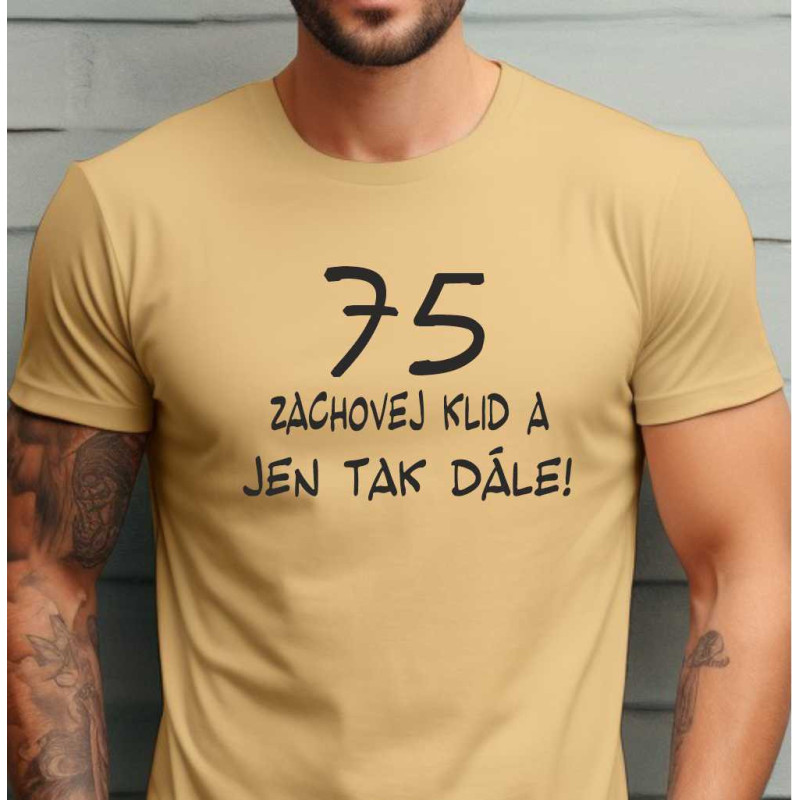 Pánské bavlněné tričko s krátkým rukávem s vtipným potiskem. Tričko je ideálním dárkem k 75. narozeninám, je to dárek praktický protože trička každý nosí a také je potřebuje. Triko s potiskem je tedy nejen užitečným, ale i dárkem, který zaujme a potěší a udělá z narozenin zážitek.